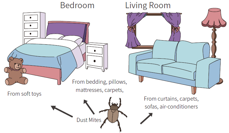 • Cover your pillows and mattresses with special zippered covers that keep dust mites away