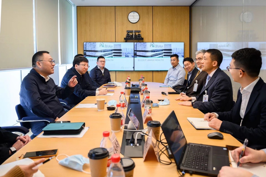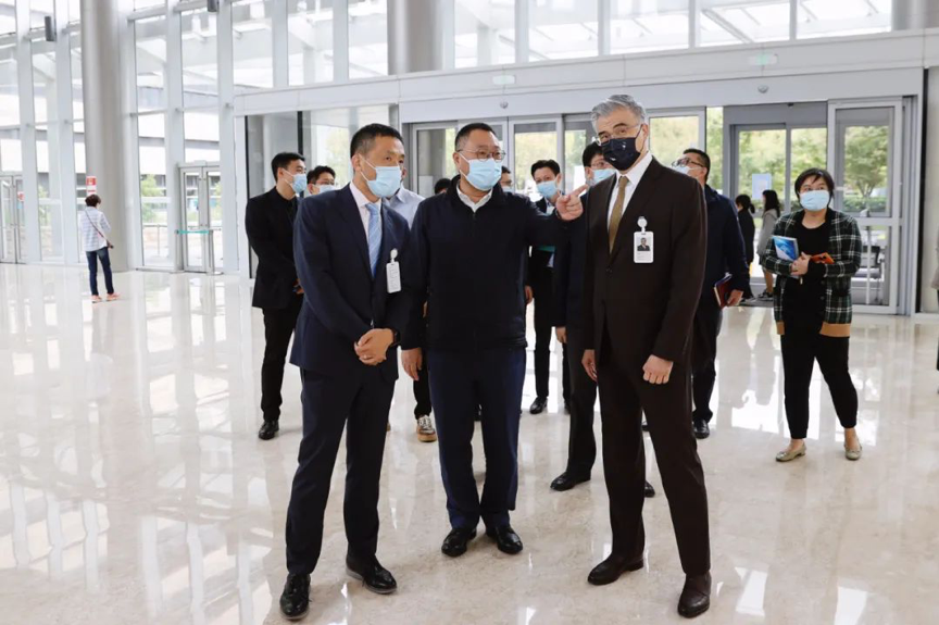 曹书记一行详细了解了医院运行以及在大健康行业的战略布局情况,实地调研了医院门诊、住院楼,认可了嘉会五年来的扎实发展,肯定了嘉会在疫情期间为徐汇抗击疫情作出的贡献,并希望嘉会国际医院充分发挥国际化医疗资源优势,满足各类人群的差异化医疗需求。