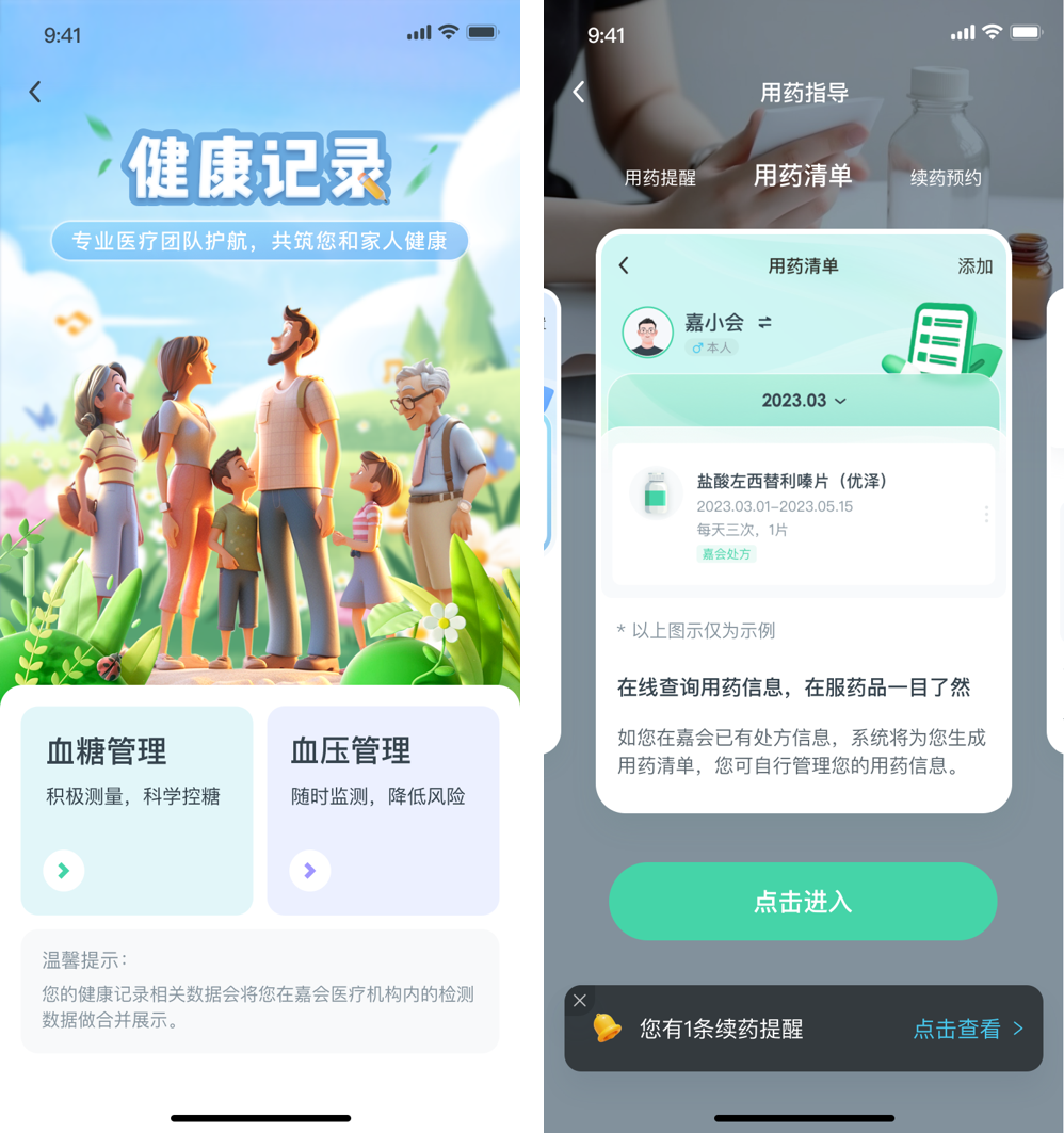 “现今互联网时代,慢病管理APP为医患之间搭建了直接、可及、持续、便捷的渠道,实现连续监测,随时评估,综合干预,和及时预警。嘉会APP的慢病管理系统是实现‘全家、全程、全健康’理念的重要一步,随着系统的不断升级和完善,可以帮助患者进一步认识自身疾病,养成健康生活的习惯,用正确的方式和心态处理疾病中遇到的各种问题。”上海嘉会国际医院心脏中心主任魏盟医生分享道。基于嘉会APP数字化医疗服务体系,患者和家属可通过慢病管理、用药提醒等精细化管理服务模块,鼓励老人按照医嘱持续进行血糖、血压、膳食等数据监测,一键续药,配送到家。该系统打破了医患间的信息壁垒,由医生与患者共同管理并实时监测,一旦健康数据出现异常,嘉会医护团队将即刻收到预警提醒,如确有潜在风险将致电患者尽快就诊并调整诊疗方案,以达到“未病先防”的目标。另一方面,子女也可在APP上绑定家人信息,实时查看老人健康数据,并远程设置用药提醒,协助提醒父母定时服药,以帮助父母取得更加理想的治疗效果。