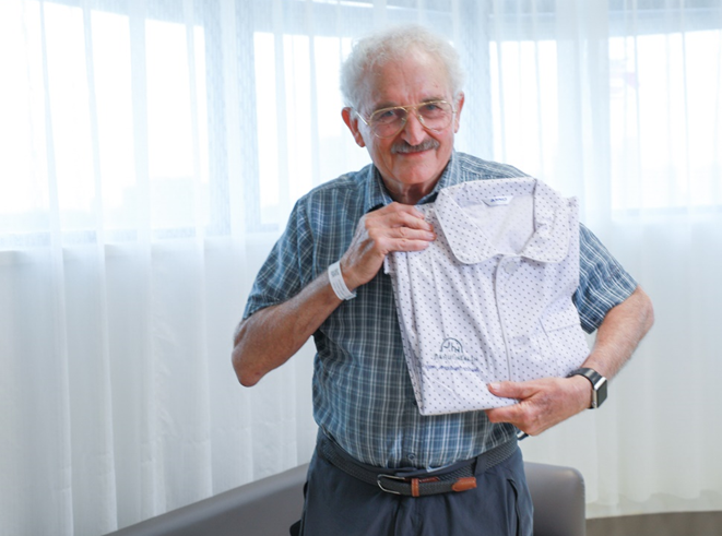 患者出院之际,嘉会国际肿瘤中心特别赠予他一枚寓意健康平安的中国传统平安扣作为祝福。患者也特意请求,将一件绣有他自己名字的病房服留作纪念,见证这段康复之旅。他还主动在其病友社群及社交媒体上分享自己这段在上海的治疗经历。