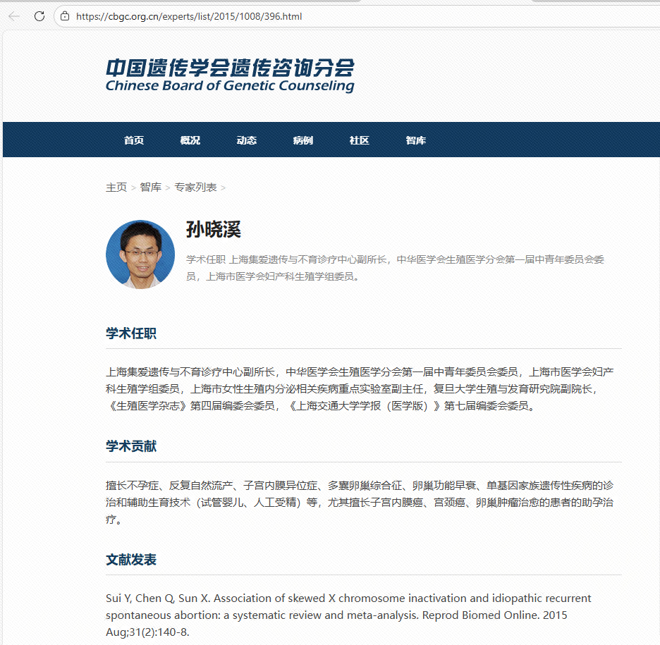 上海市医学会生殖医学专科分会前任主任委员上海市医师协会生殖医学分会副会长