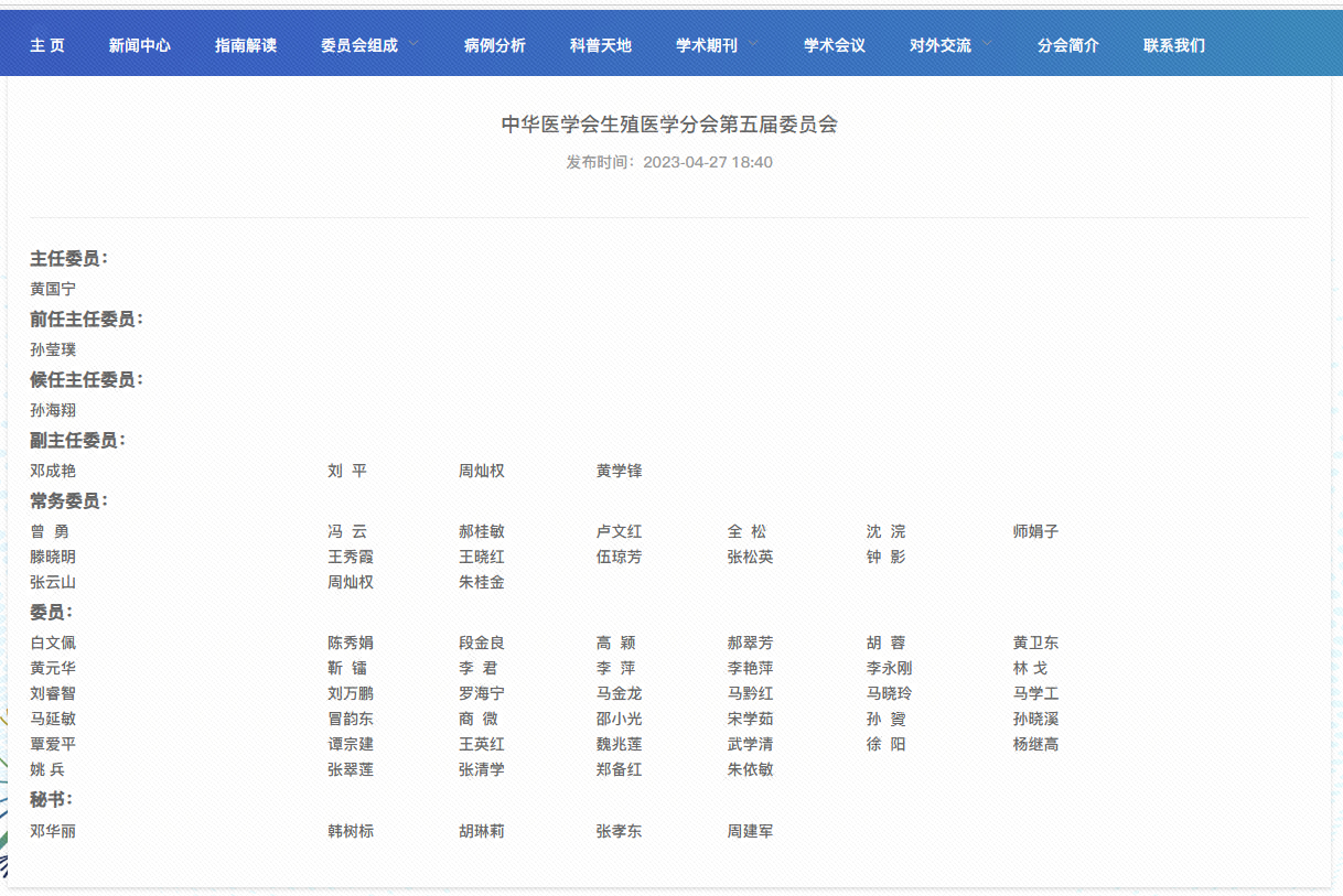 中国医疗保健国际交流促进会生殖医学分会常务委员