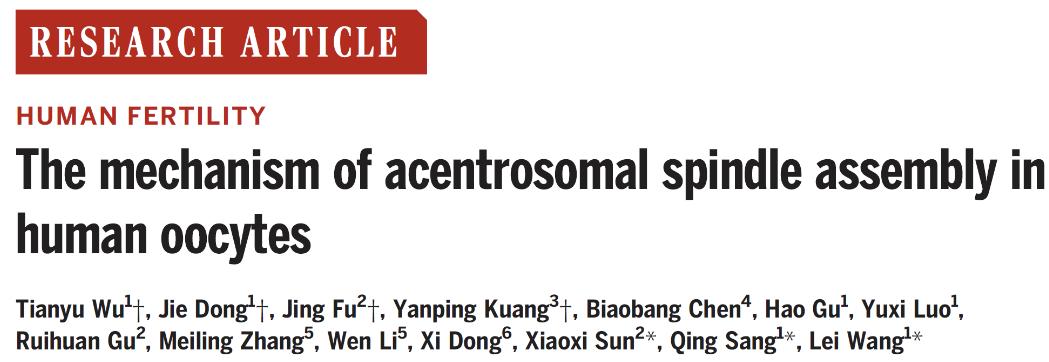 首发于澎湃新闻:【学术前沿】Science突破! | 打破认知:王磊/桑庆/孙晓溪揭开人类卵母细胞纺锤体组装之谜